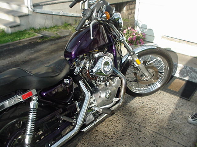 My name is Jay from Bergen County, New Jersey. This is my first bike. A 1982 Sportster. I bought it in August 2000. It has since been stripped to be painted with all new parts and gadgets. Including custom tank work, to give a stamped impression paint and will painted black with flames. I will post once complete.